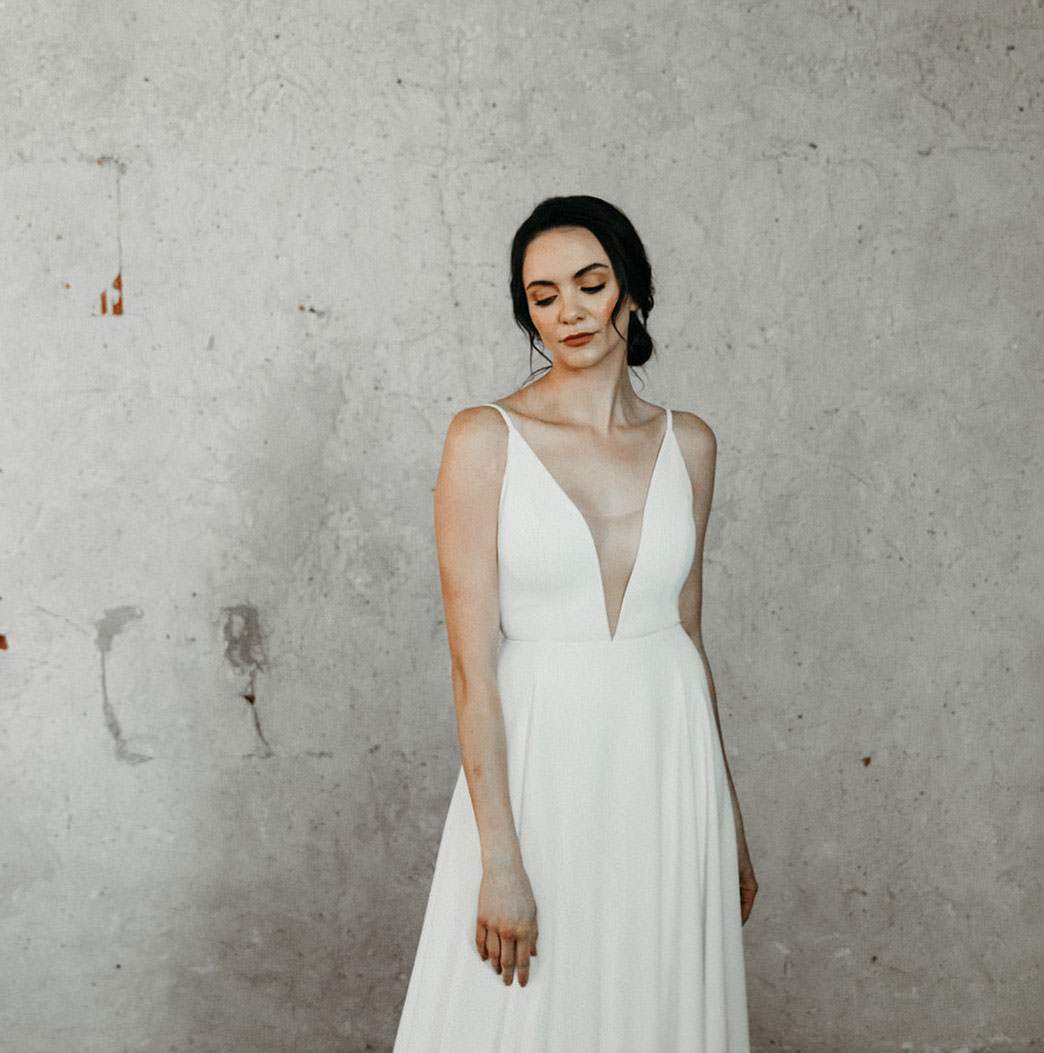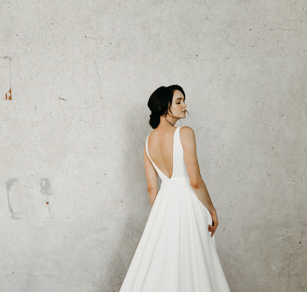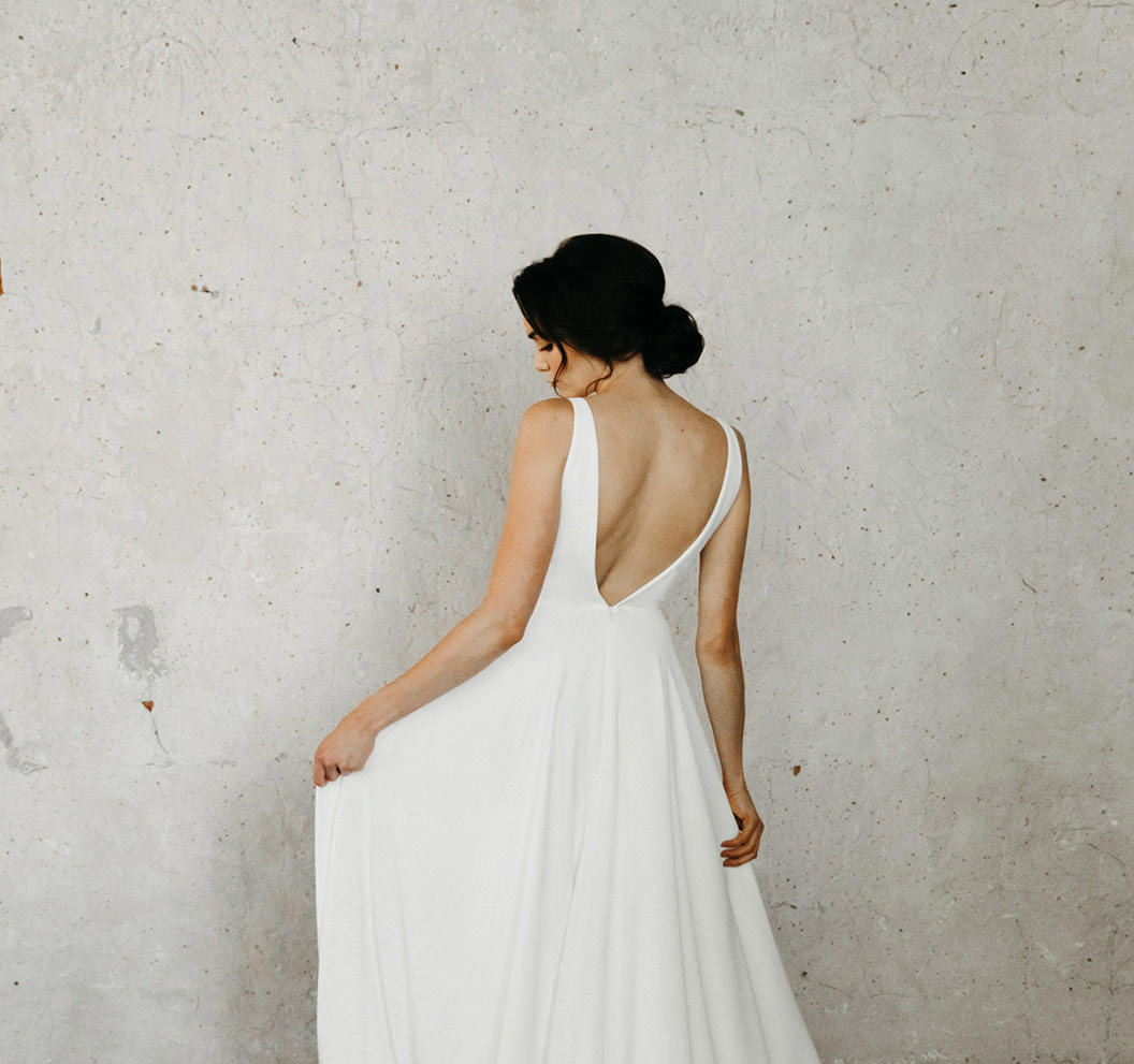 All the dresses can be ordered with either a fitted skirt or an A-line skirt.